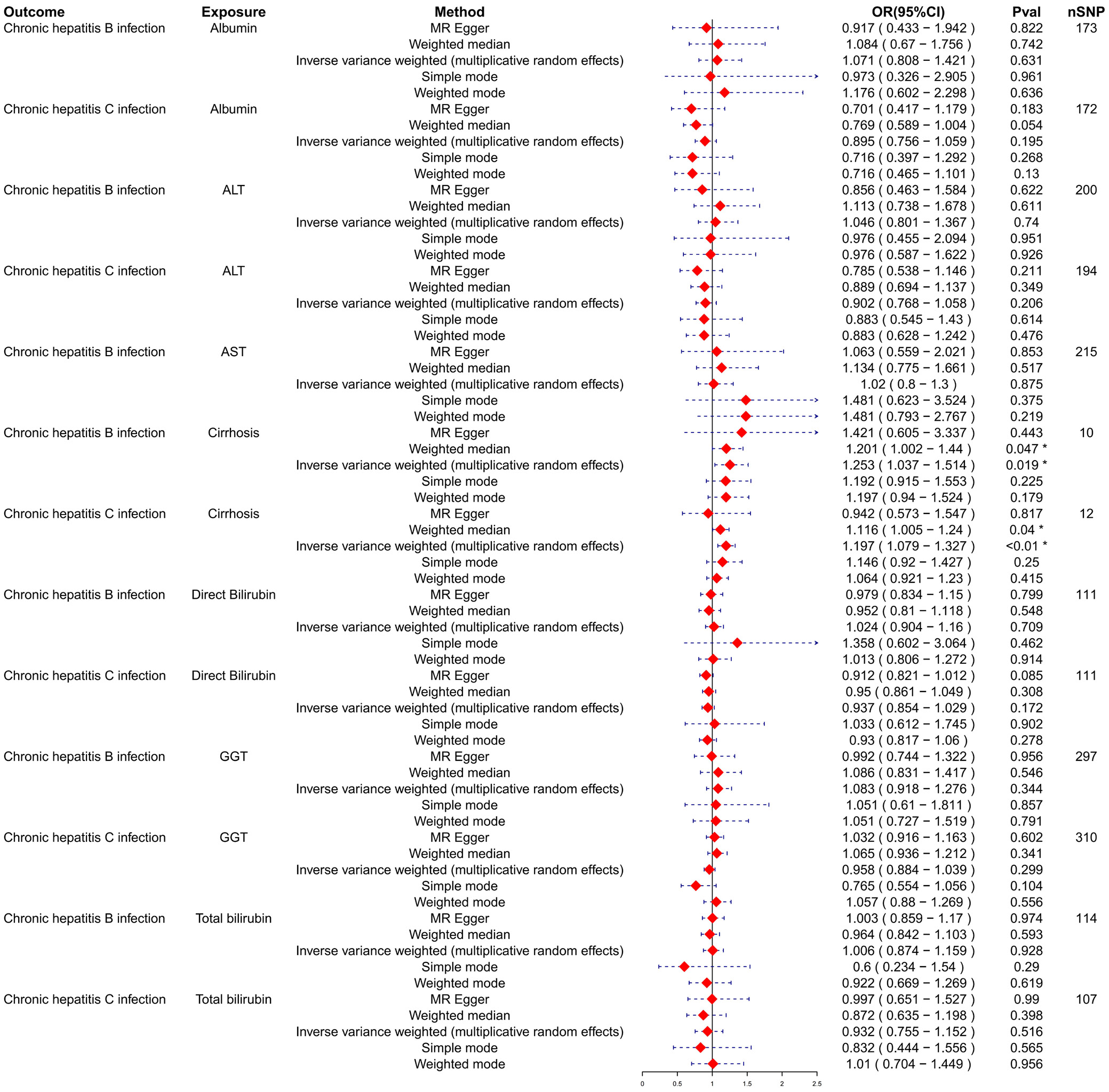 Key words: Mendelian randomization, cirrhosis, viral hepatitis, liver biomarkers, causal relationships