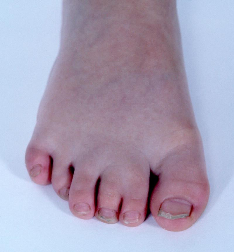 Cutaneous syndactyly is a malformation that arises during limb development, characterized by the fusion of adjacent digits involving only the skin. Cutaneous syndactyly of the toes is illustrated in Figure 8.28, 30