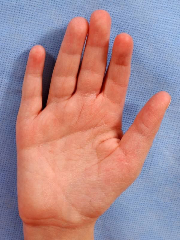 Many syndromes are associated with abnormal palmar creases, and CdLS is among them, with approx. 60% of patients exhibiting a single transverse palmar crease (Figure 7).28