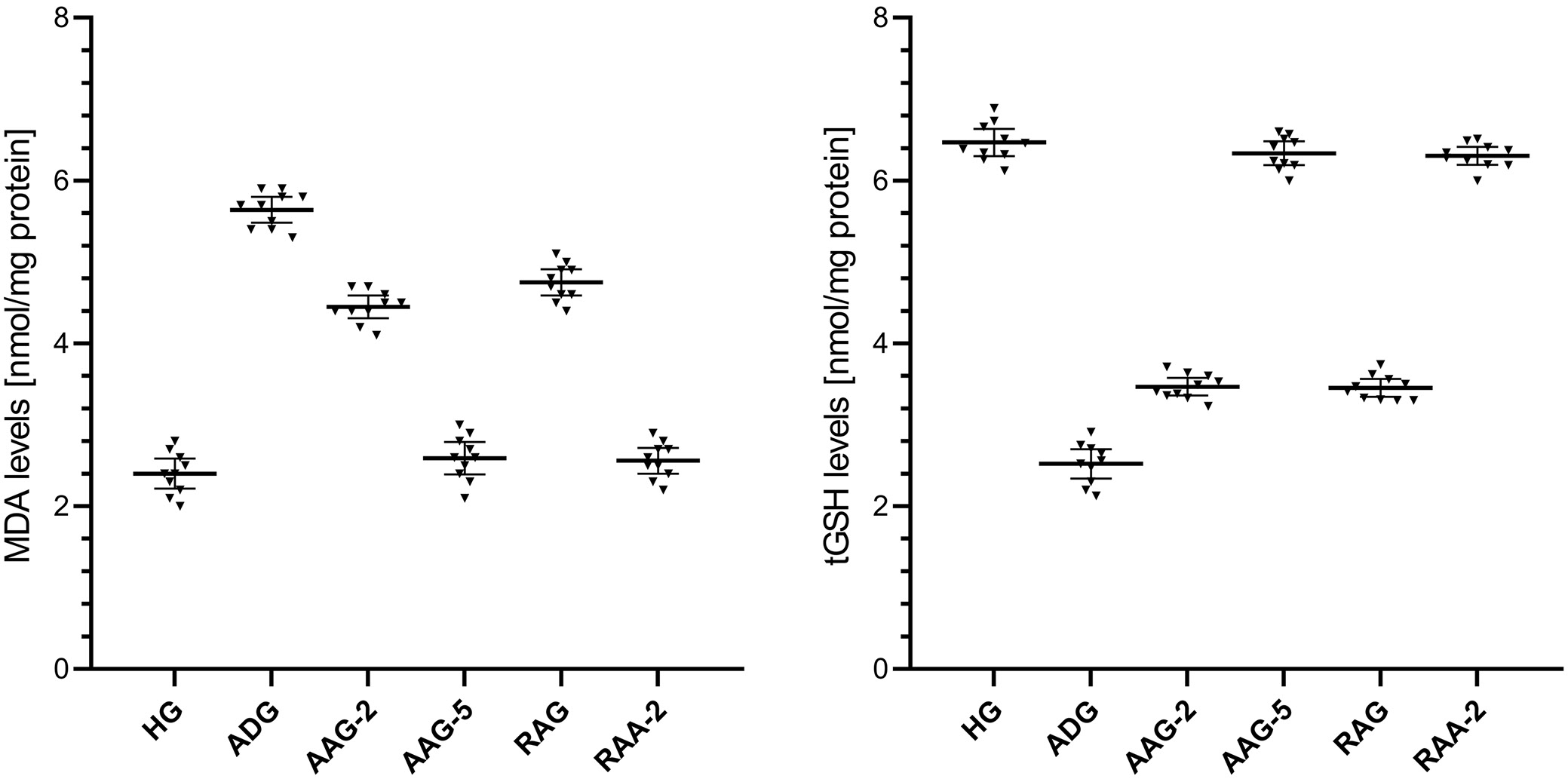 Determination of the protein levels of MDA, tGSH, SOD and CAT