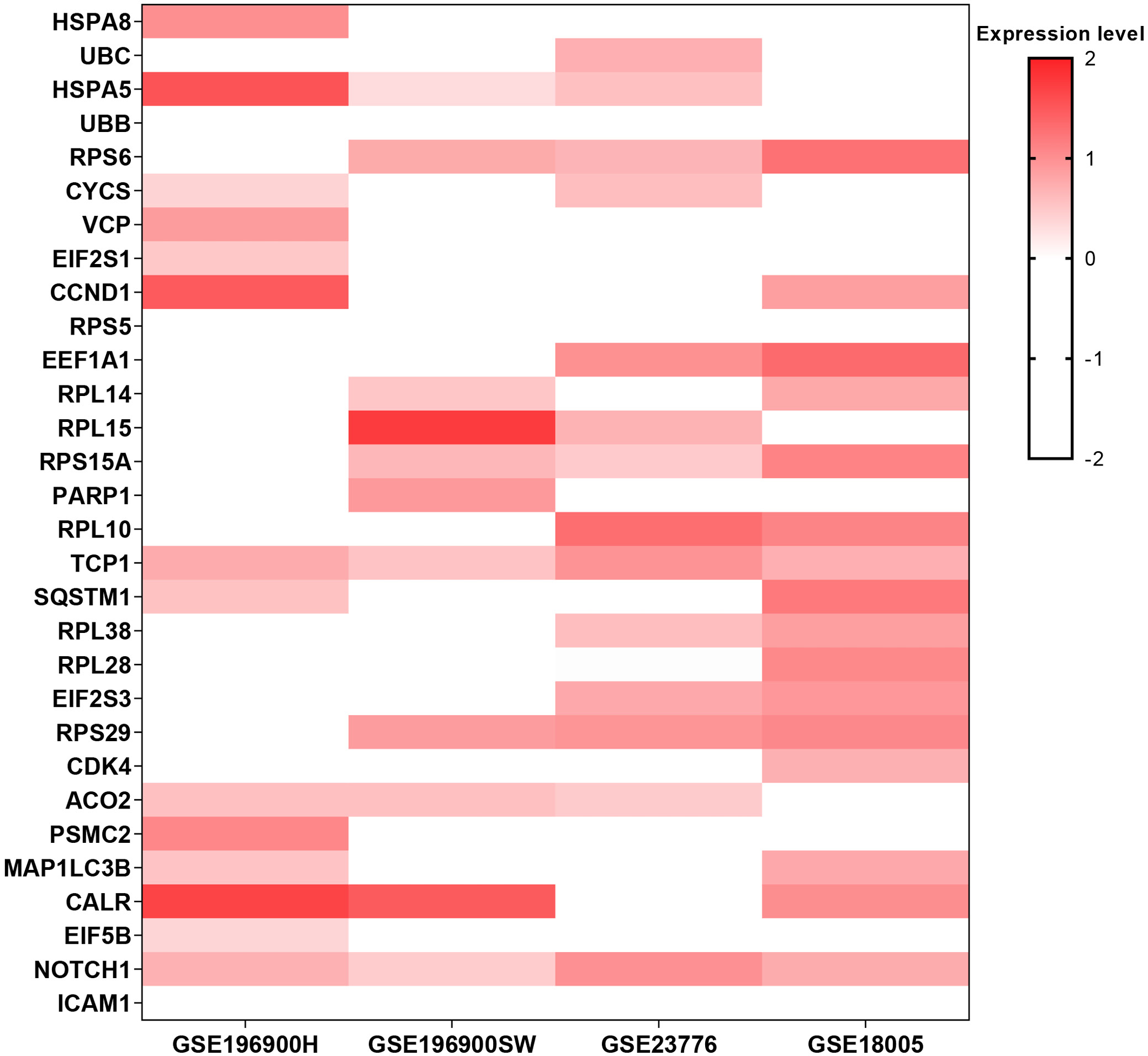 Protein–protein interaction (PPI) networks for the common DEGs were generated using STRING v. 11.5 (https://string-db.org/). Hub genes within these networks were identified and ranked in Cytoscape (https://cytoscape.org) via the cytoHubba plugin,15 with the top 30 genes selected based on connectivity degree. A heatmap illustrating the expression patterns of these hub genes across all datasets was then plotted using GraphPad Prism 9.2 (GraphPad Software, San Diego, USA).