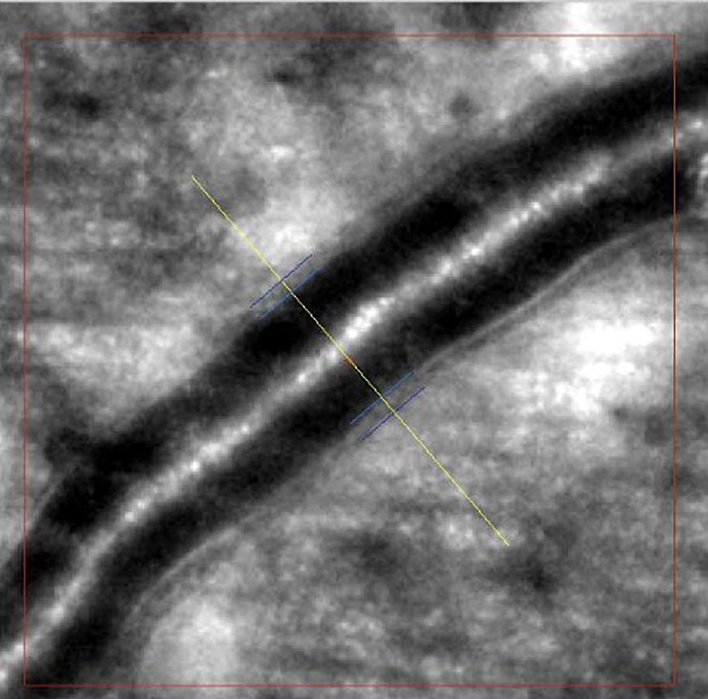 Images of retinal arterioles using an AO retinal camera (rtx1™; Imagine Eyes, Orsay, France) were captured in both patient groups. Before imaging, participants received 1 drop of 1% tropicamide for pupil dilation. Retinal artery images were analyzed with AOdetectArtery software (rtx1™; Imagine Eyes), focusing on the superior quadrant arterioles with a lumen diameter of at least 40 μm and no bifurcations. Two measurements were taken, and the highest-quality scan was selected for analysis.