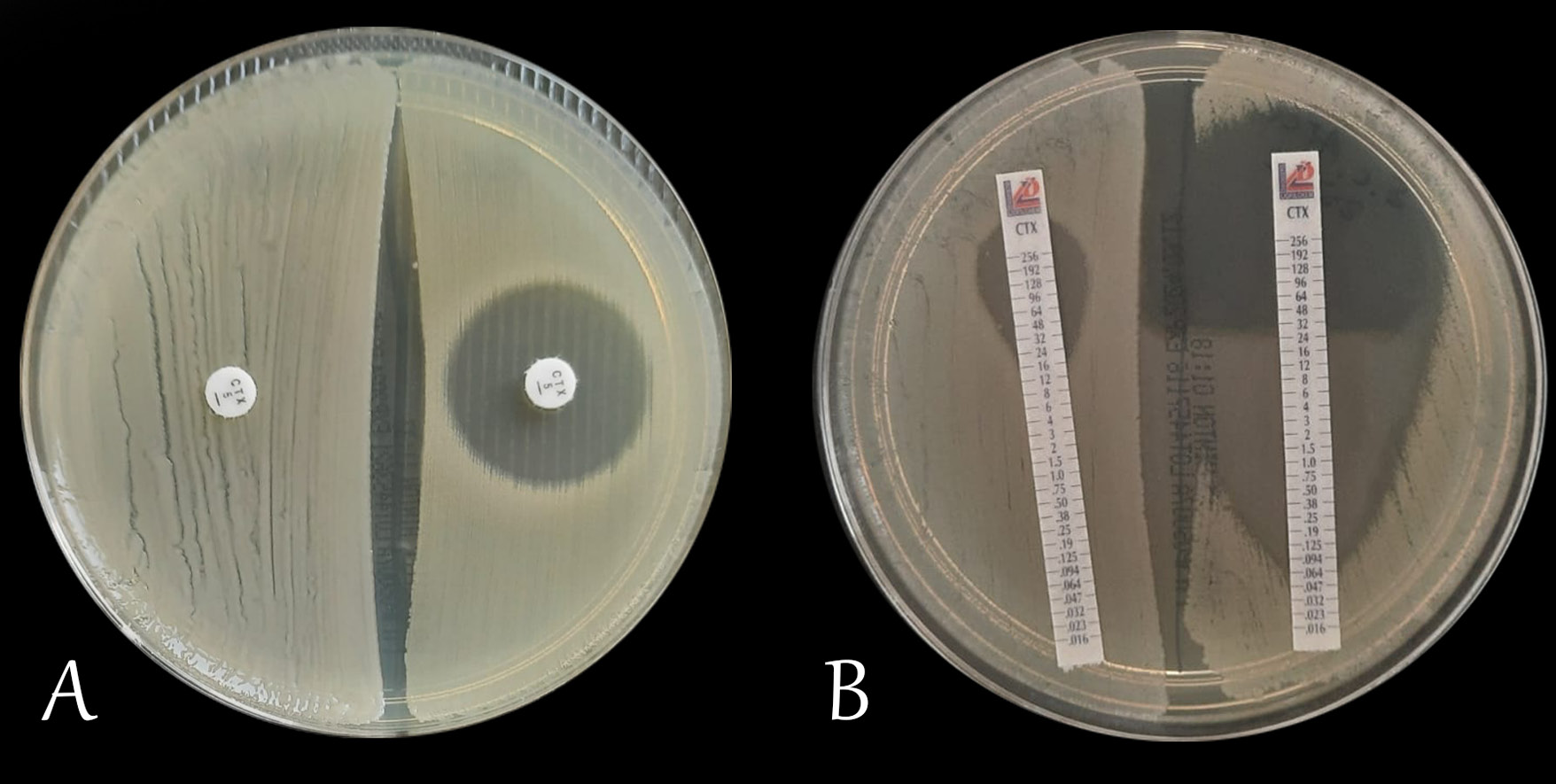 Other indirect factors affecting the effectiveness of antimicrobial therapy include the drug’s pharmacokinetic properties: absorption, distribution, metabolism, and excretion. Each of these factors determines the extent and manner in which a given antibiotic exerts its pharmacodynamic effect. The effect of an antibiotic on a given microorganism can be assessed in vitro in a microbiological laboratory. One of the most commonly used methods for this purpose is the disk diffusion test on agar medium (Figure 1A). In this method, the result is given as the diameter of the inhibition zone around the antibiotic disk, expressed in millimeters. In another method – the E-test, a gradient strip with the antibiotic is placed on an agar medium inoculated with an appropriate concentration of bacteria. After a suitable time (usually 18–24 h), the inhibition zone is read, which is determined by the apex of the formed parabola (Figure 1B). The interpretation of the read result, depending on the country, is carried out using tools contained in documents of the Clinical and Laboratory Standard Institute (CLSI), the French Society for Microbiology (Comité de l’Antibiogramme de la Société Française de Microbiologie) or the European Committee for Antimicrobial Susceptibility Testing (EUCAST).10, 11, 12, 13, 14 However, in vitro susceptibility testing alone does not determine clinical success. Achieving it depends critically on the antibiotic’s pharmacokinetic profile – its absorption, distribution, metabolism, and excretion within the body. Thus, pharmacokinetic differences, despite the same in vitro susceptibility, can determine the therapeutic effect. This necessitates individualized dosing that takes into account multiple factors and the specific clinical situation.15, 16, 17, 18