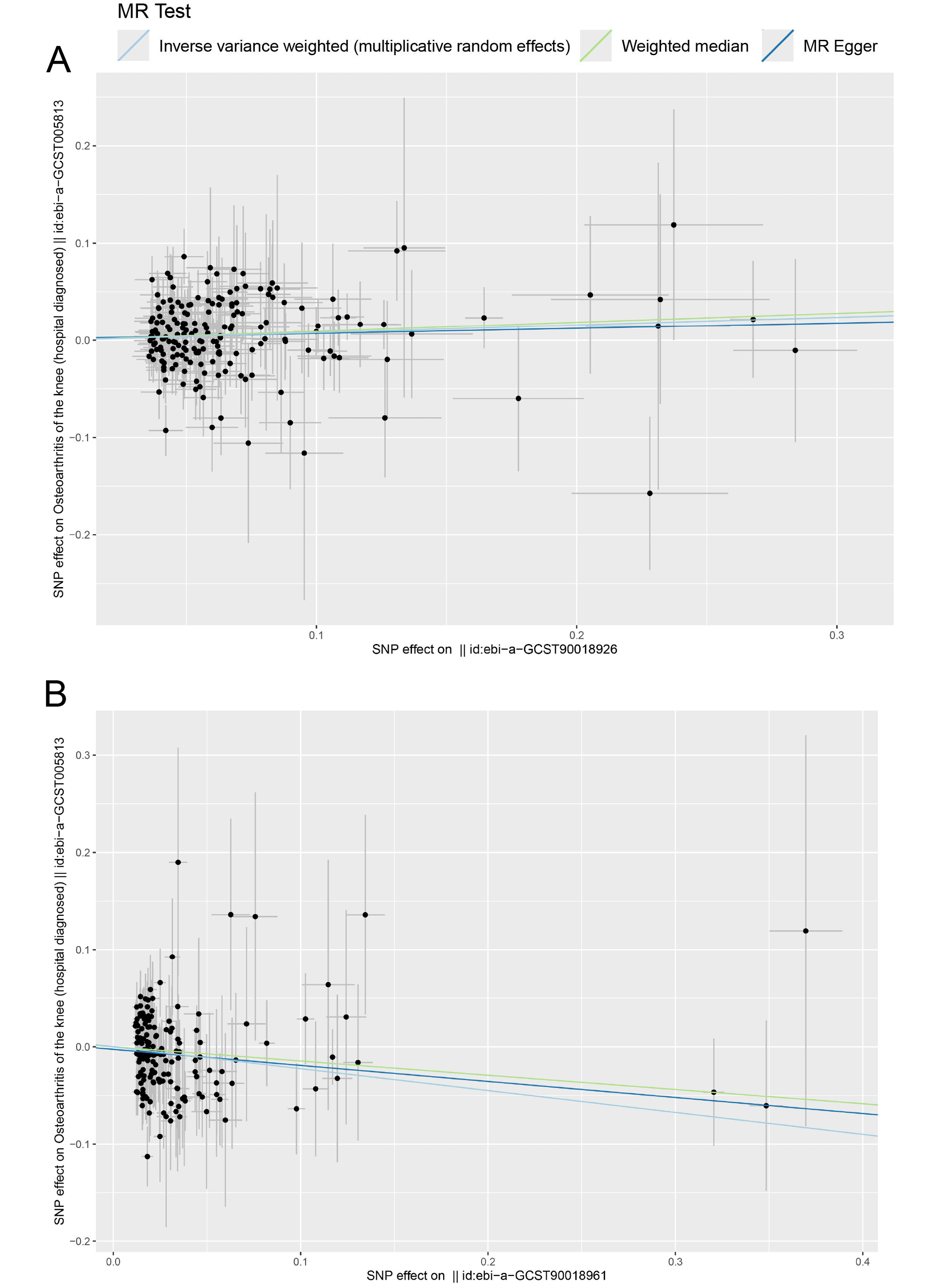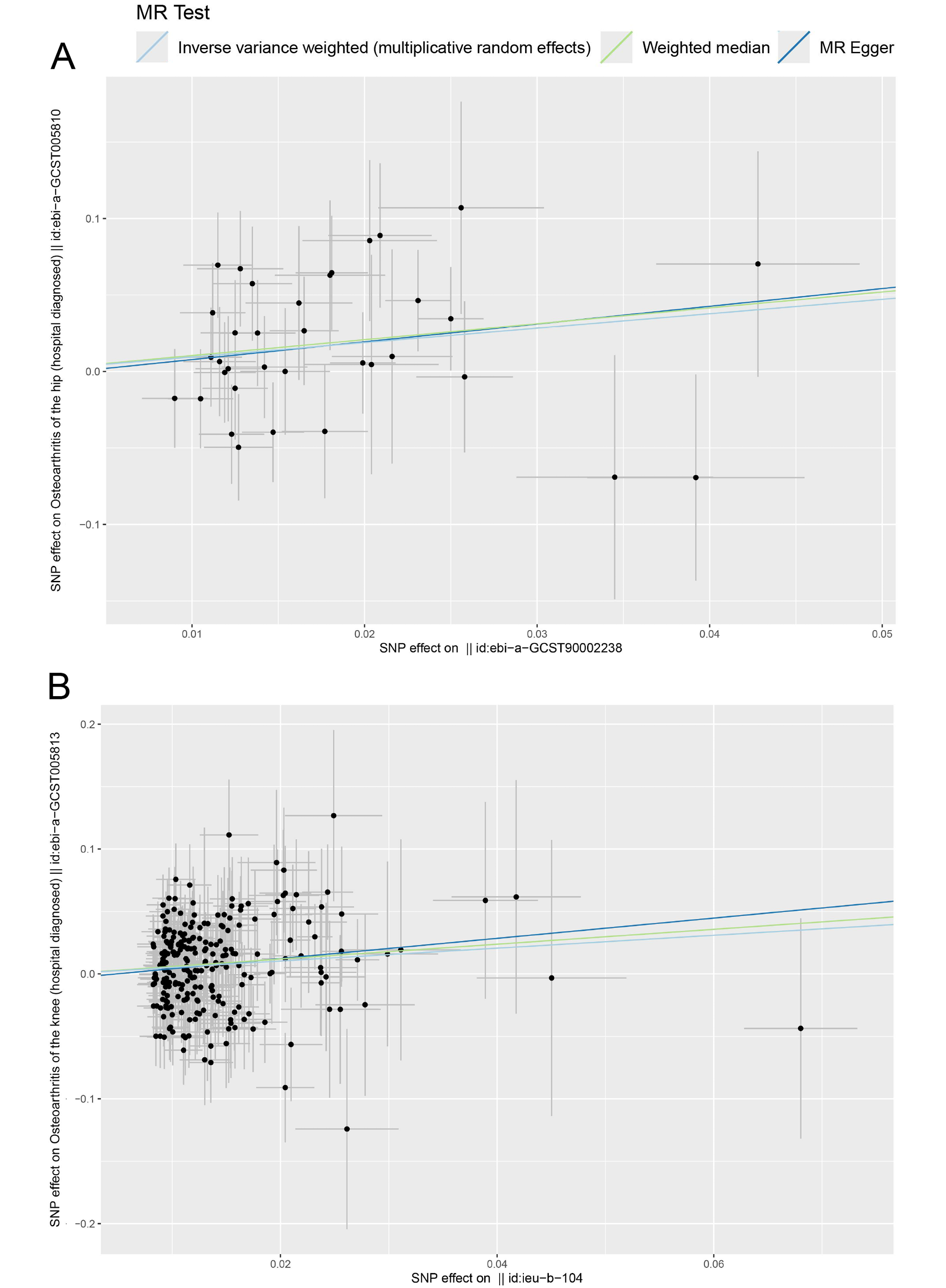 Mendelian randomization analysis was conducted using the TwoSampleMR package v. 0.5.7 in R v. 4.4.0 (R Foundation for Statistical Computing, Vienna, Austria). A bidirectional MR framework was used to investigate the causal relationships between diabetes-related traits, blood lipid levels and the risks of KOA and HOA. This approach was particularly useful because it enabled the assessment of causality in both directions, providing a more comprehensive understanding of the complex and interdependent relationships among these variables. Inverse-variance weighting was used as the primary analytical method. This approach estimates the causal effect of an exposure on an outcome by combining SNP-specific effects, assuming that all instrumental variables are valid and independent.14 To increase the reliability of the causal estimates, 2 additional methods were used as complementary analyses: weighted median (WM) and MR-Egger regression. The WM method provided consistent causal estimates when at least 50% of the instrumental variables were valid, even if some instruments were weak or invalid. Mendelian randomization–Egger regression was used to account for pleiotropy, which occurs when an instrumental variable influences the outcome through pathways other than the exposure of interest. This method can help correct for potential biases even when all instruments are invalid or pleiotropy is present. Therefore, causal inference is strengthened when results are consistent across all 3 analytical methods.
