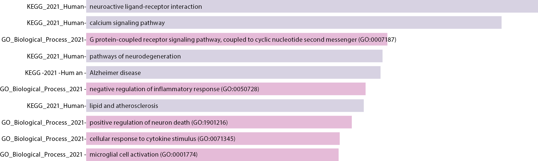However, it is important to note that HRH1 and ADRB2 were downregulated in 1 of the contributing studies, but the significantly higher upregulation observed in the other study shifted the overall pooled direction. Additionally, due to incomplete statistical reporting in the included studies, such as the absence of standard deviations (SDs) or variance estimates, the precision of these pooled fold changes could not be assessed, and confidence intervals (CIs) could not be calculated.