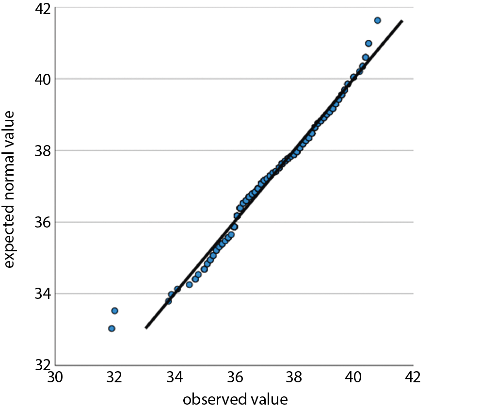 We have examined all the metric variables for normal distributions by using Q–Q plots. Normal distributions were seen for age, preclinical SBP, emergency department SBP, preclinical temperature, and emergency department temperature. Non-normality was seen for lactic acid (lactate). After Box–Cox transformation with lambda = 0.1, normal distribution was achieved and a two-tailed unpaired t-test showed a p = 0.0008. For emergency department vigilance, a non-normal distribution was seen. After Box–Cox transformation with lambda = 6.7934, a normal distribution was approximated but did not satisfy the Shapiro–Wilk test. Therefore a Mann–Whitney U test was used to test for significance. All results from regression analysis and Q–Q plots as well as and transformation results are provided as supplementary file.
