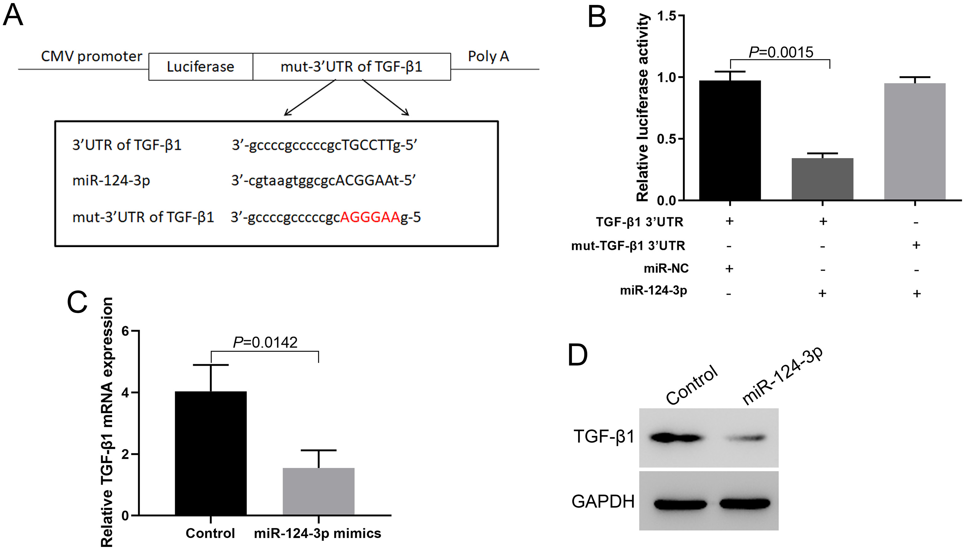 miR-124-3p can target the 3’-UTR of TGF-β1 and inhibit TGF-β1 expression