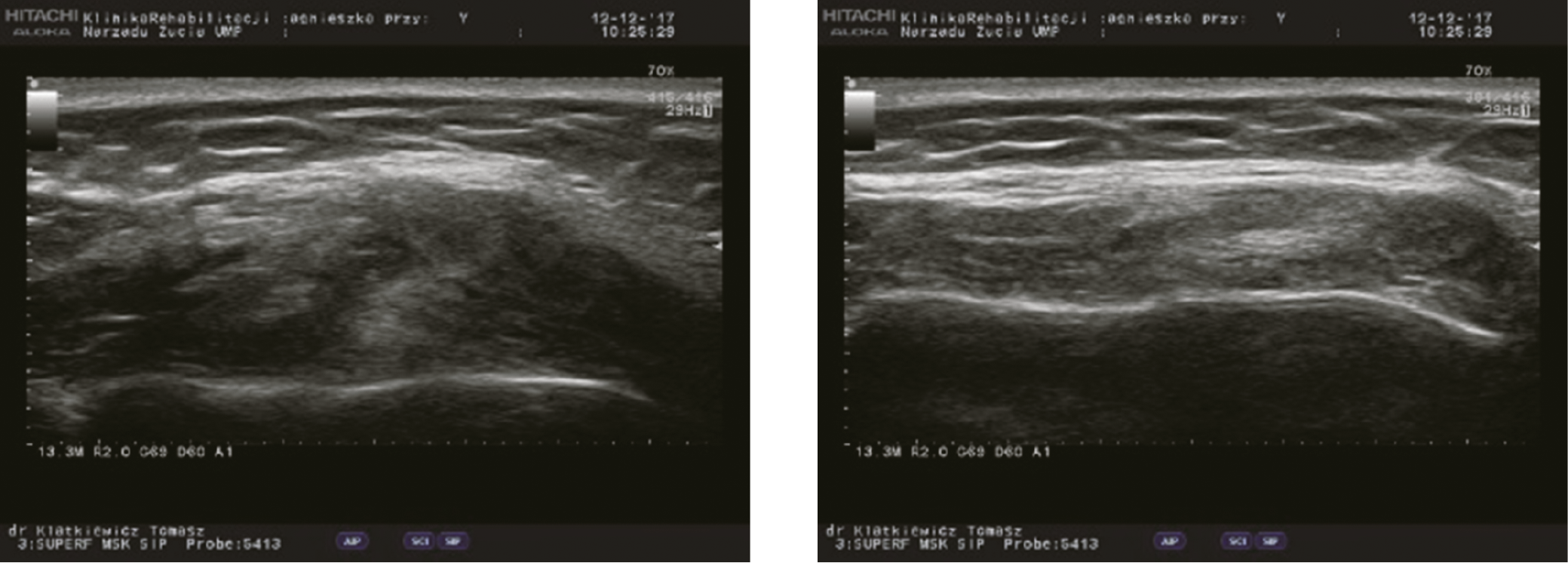 The ultrasound examination is cost-effective, repeatable (unlike electromyography (EMG)), free from contraindications (unlike magnetic resonance imaging (MRI)), and more objective than clinical examination because it does not reflect the patient’s self-reported data. The presented protocol emphasizes clinical use, makes it reliable for functional diagnostics, and enables objective examination of muscle strength and muscle bilateral symmetry. We are convinced that the authors’ original method of examination standardizes the clinical protocol, and allows objective comparison of the population. The presented FITD calculation allows size-independent data to be recorded and can be easily introduced into clinical examination. Further studies describing the relationship of FITD to clinical disorders seem to be needed in the future.
