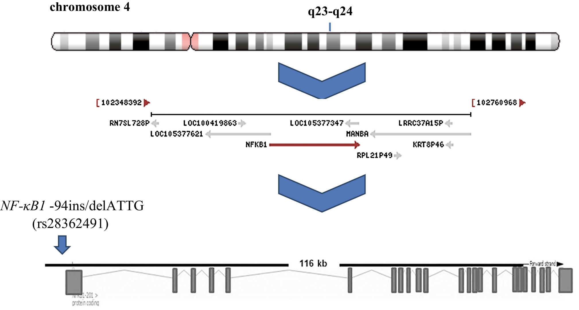 Identification of -94 ins/del ATTG polymorphism (rs28362491) in the NF-ĸB1 gene