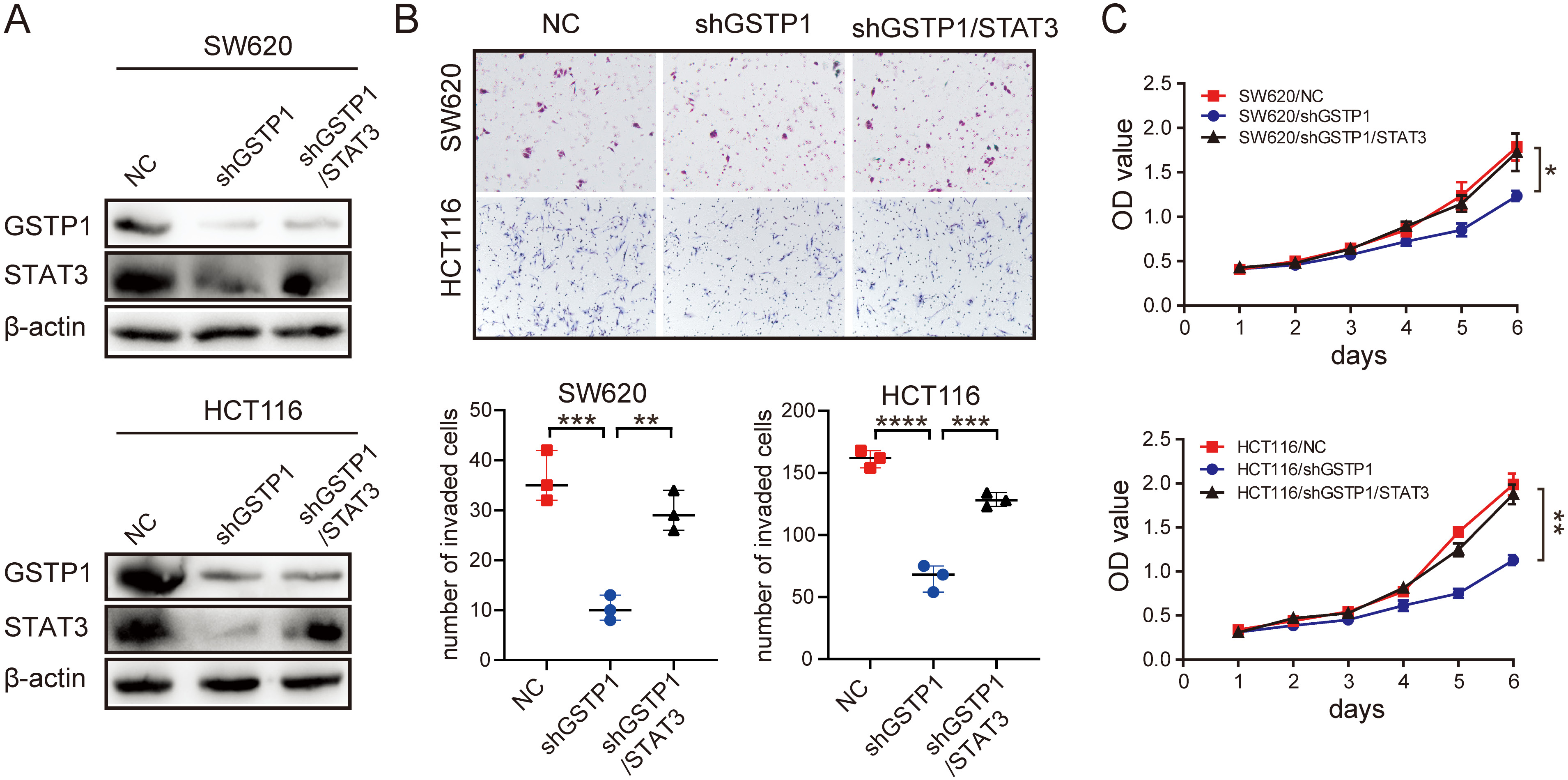 Conclusions. The present study demonstrated that GSTP1 could enhance the expression of STAT3 to promote the proliferation, invasion and metastasis of CRC cells, which provides a potential therapeutic target for the clinical treatment of CRC.