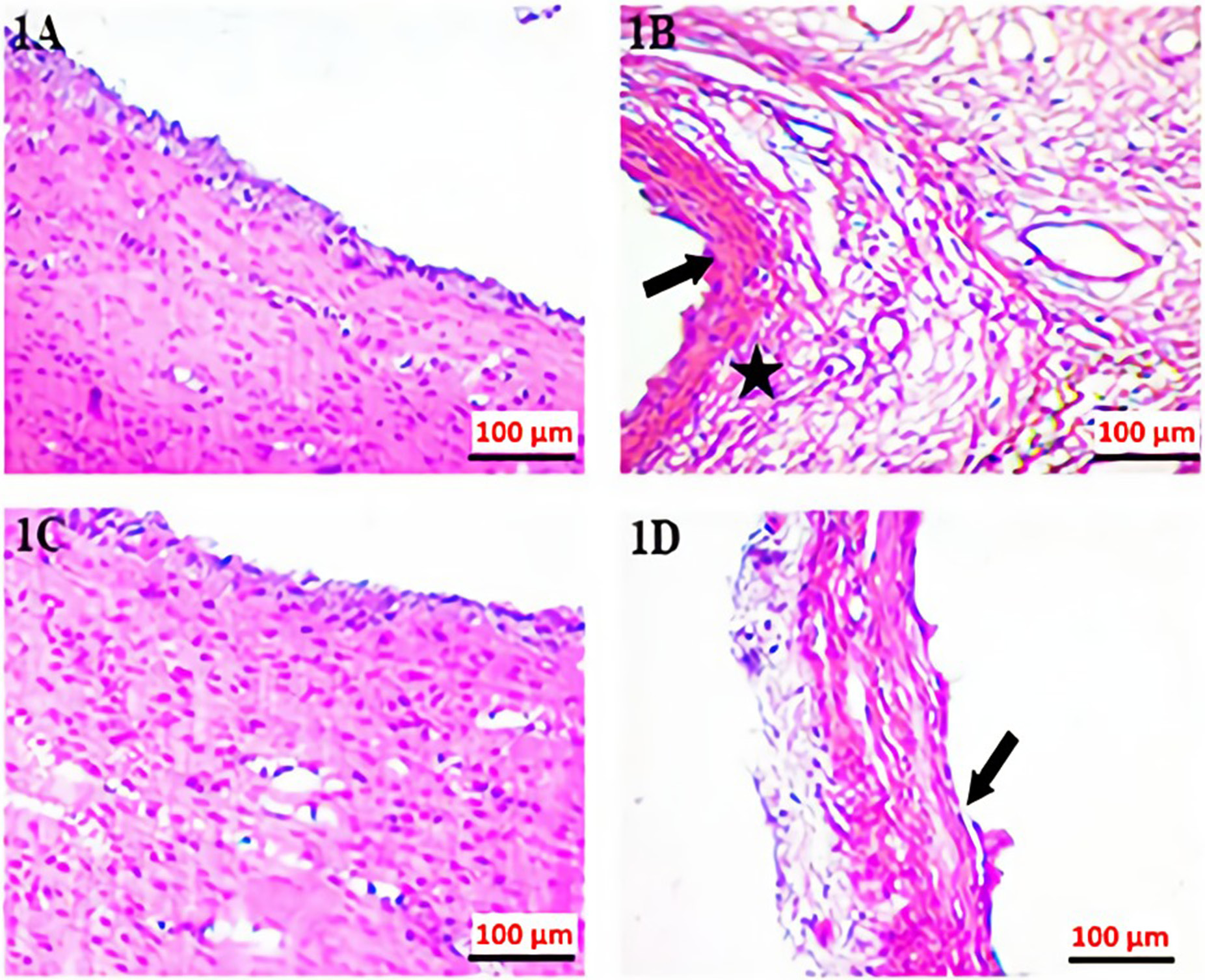The excised endometrial implants were fixed with 10% formalin solution upon histopathological examination. Sections approx. 5-μm thick were taken from a formalin-fixed endometriotic implant. Samples were stained with hematoxylin and eosin (H&E) and examined under light microscopy. Histopathological scoring was done22 based on a following rating scale: +3: a well-preserved epithelial layer; +2: a moderately-preserved epithelial layer (leukocyte infiltrated epithelium); +1: a poorly-preserved epithelial layer (sparse epithelial cell); 0: no epithelial cells.