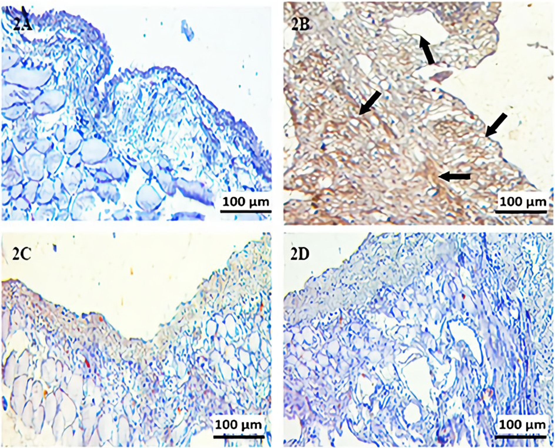 In the immunohistochemistry examination, fibrillin-1 scores differed significantly for 4 groups. According to the post hoc one-way ANOVA analysis between groups, fibrillin-1 activity increased in groups 2 and 3 compared to group 1 (p < 0.001). Moreover, fibrillin-1 immune reactivity decreased in group 3 compared to group 2 (p < 0.001) (Table 3).