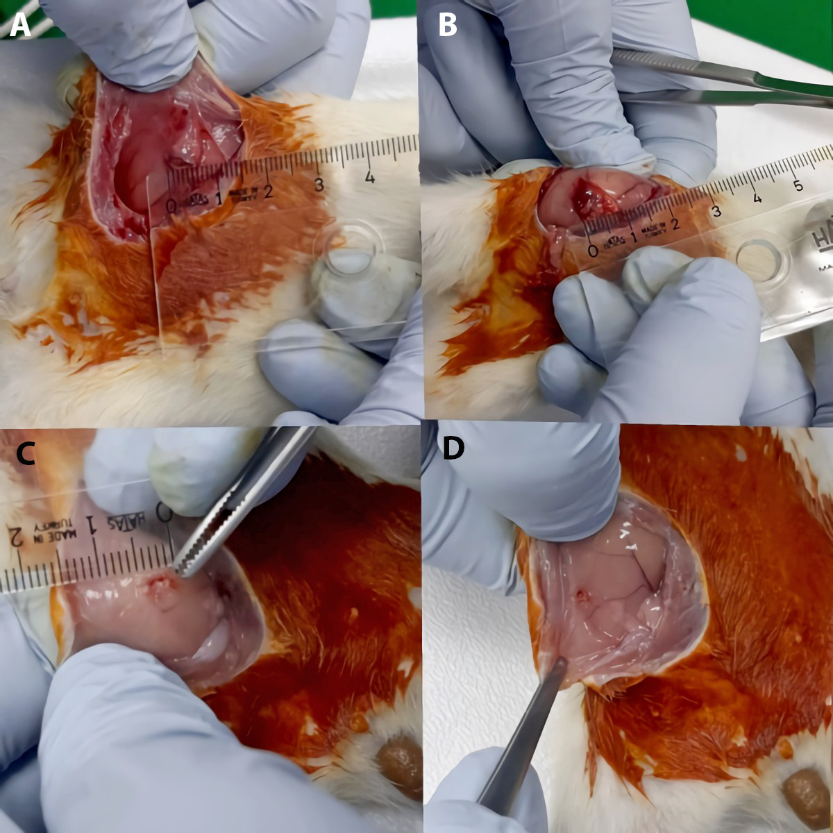 In group 3 (endometriosis + adalimumab group, n = 7), after the reproductive cycles of the animals were controlled by vaginal smear and the rats in the estrous phase were selected, the endometriosis induction was performed using autotransplantation method. At the end of the four-week period, after calculating the endometriotic volume and photographing the lesions, 5 mg/kg adalimumab was administered intraperitoneally (ip.) for 4 weeks.21