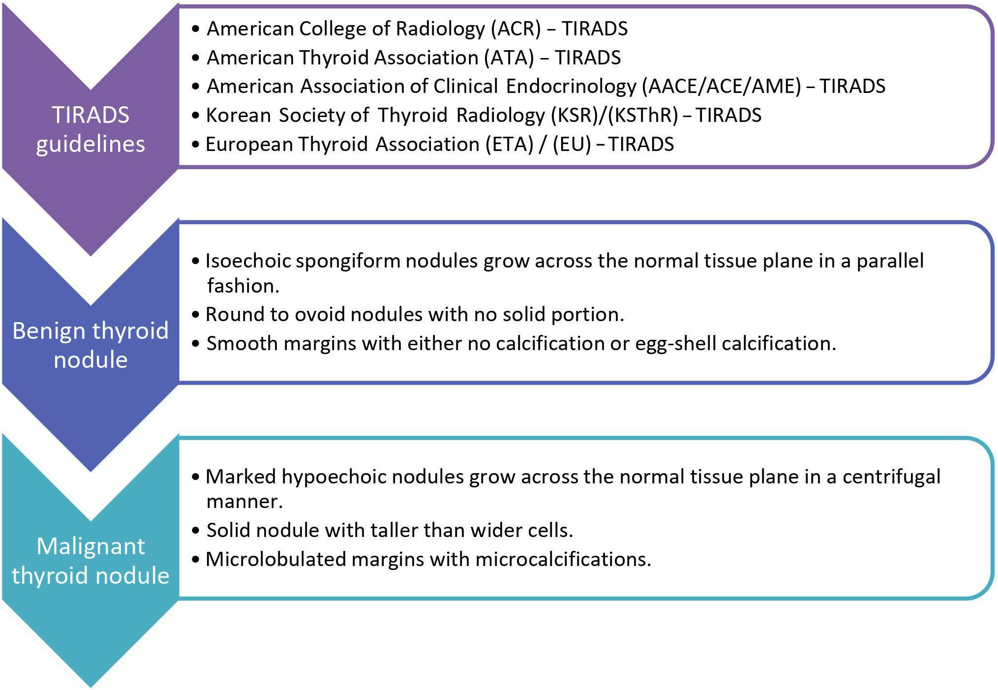 - Zayadeen AR, Abu-Yousef M, Berbaum K. Retrospective evaluation of ultrasound features of thyroid nodules to assess malignancy risk: A step toward TIRADS. AJR Am J Roentgenol. 2016;207(3):460–469. doi:10.2214/AJR.15.15121