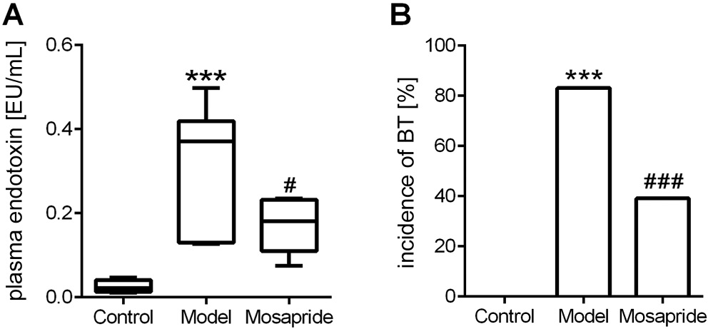 Mosapride, serving as an agonist of 5-hydroxytryptamine4 (5-HT4) receptors, has been commonly utilized as a prokinetic element for treating gastrointestinal dysfunction.11 It has been reported to be effective in enhancing gastric emptying and increasing intestinal frequency, together with improving gastric mucosal injury.12 Our previous study showed that mosapride significantly increased intestinal motility, effectively preventing the translocation of bacteria and reducing plasma endotoxin level in carbon tetrachloride (CCl4)-induced cirrhotic rats.13 However, we could not identify which genus of bacteria was involved in the improvement of endotoxin-mediated mosapride.
