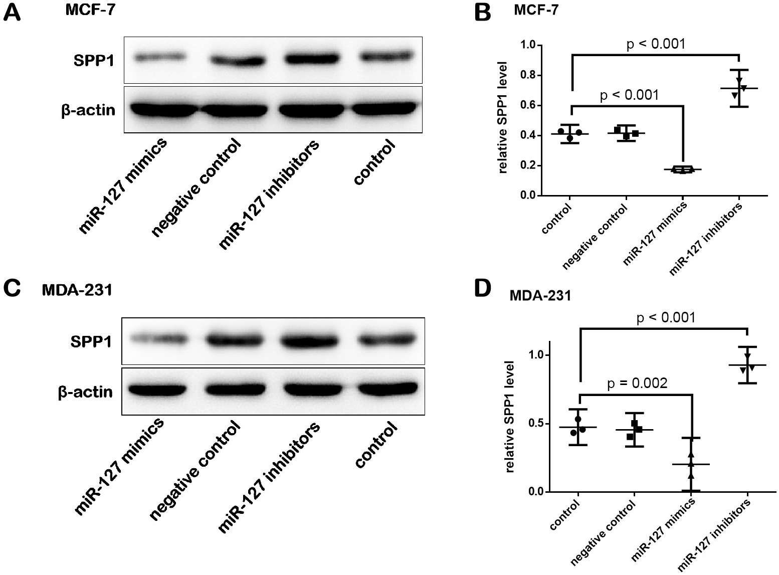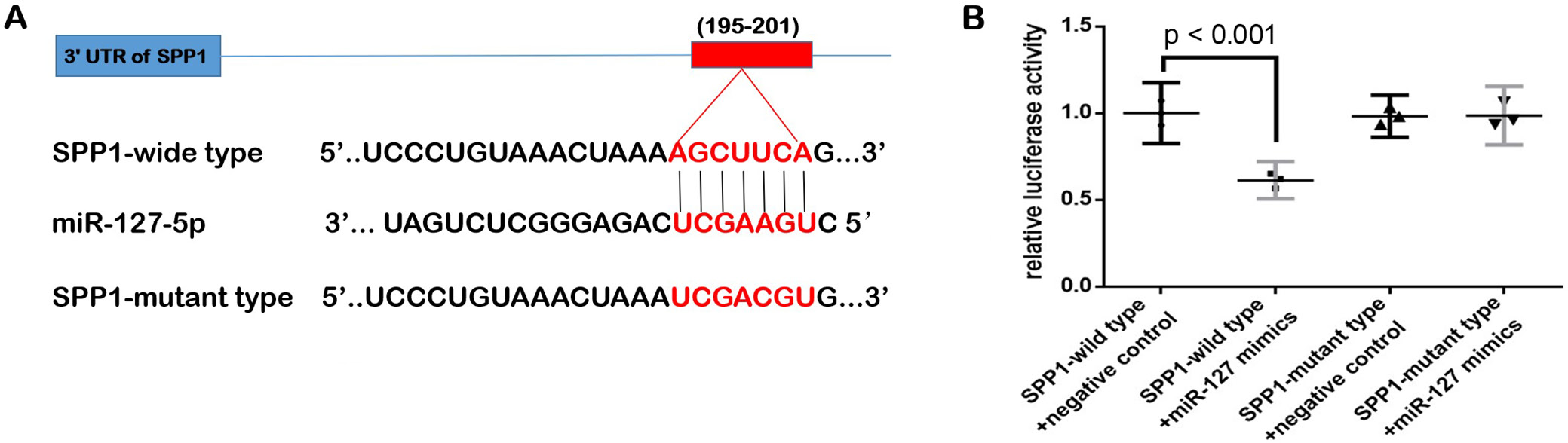 miR-127 inhibited SPP1 expression level through targeting 3’UTR of SPP1