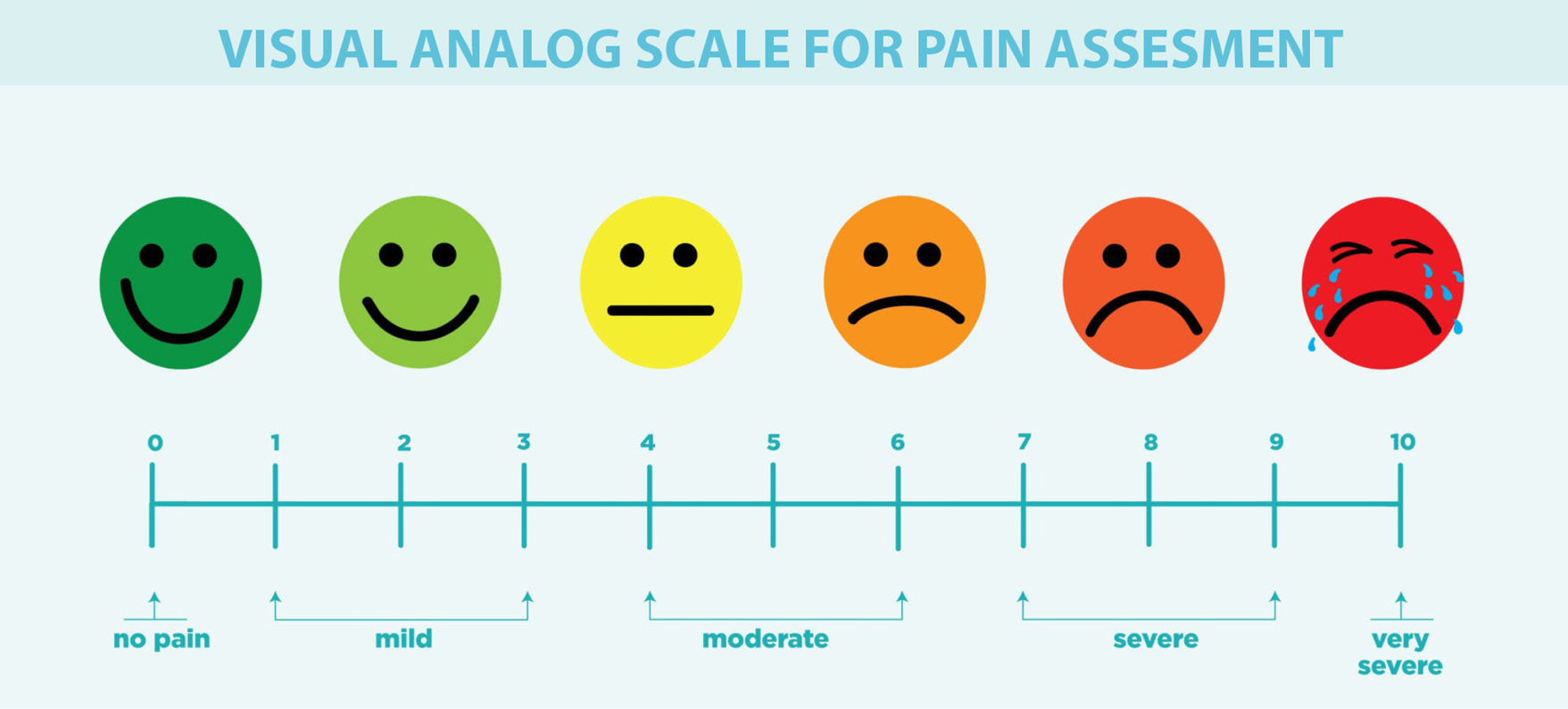 The patients were assessed for recurrence during follow-up. Postoperative pain was assessed using the visual analogue scale (VAS) 24 h after the operation. On this scale, a score of 0 indicates no pain and a score of 10 indicates very severe pain. Scores <3 were interpreted as mild pain, 3–6 were considered to indicate mild–moderate pain, and >6 indicated severe pain (Figure 1).