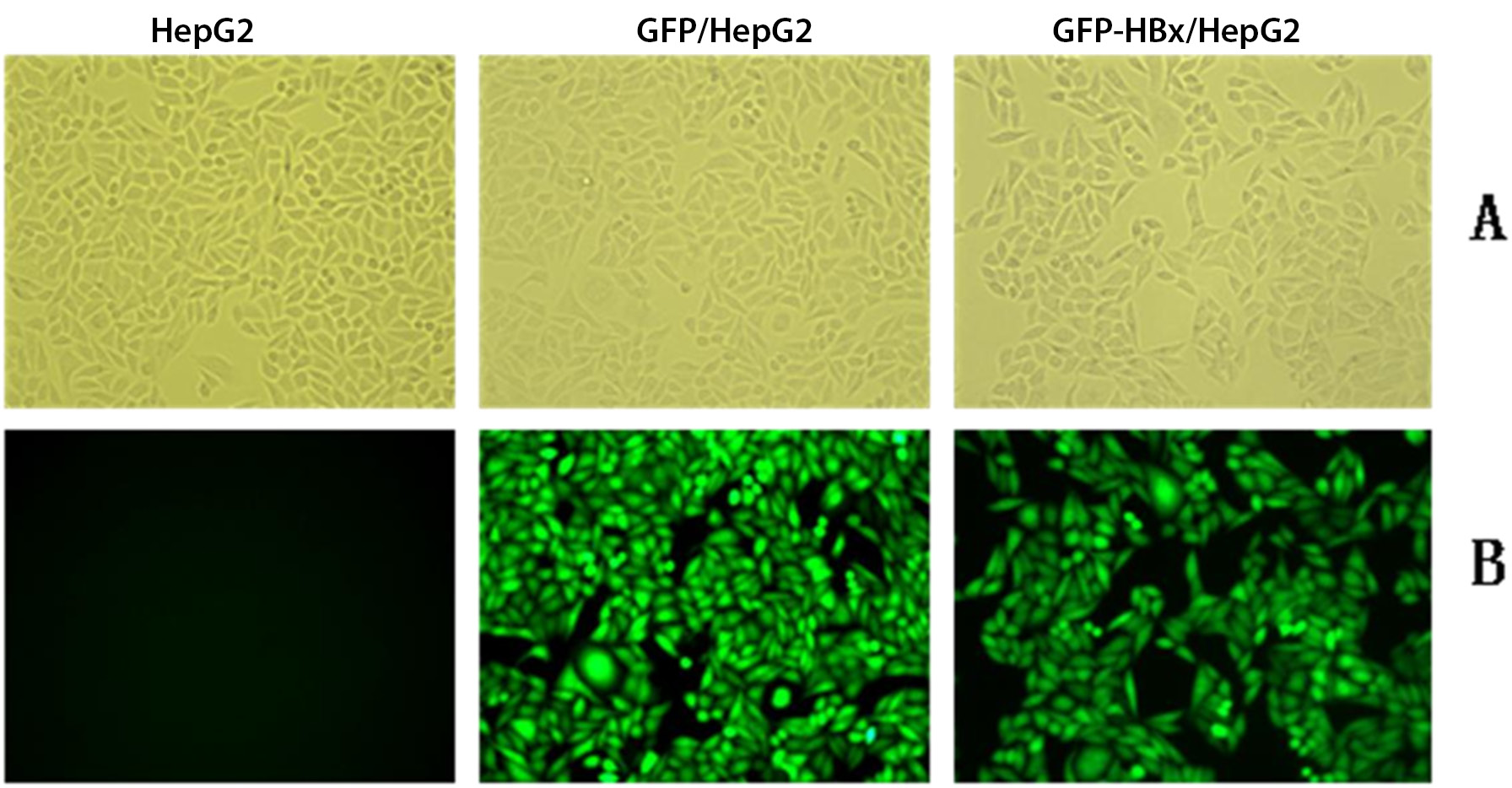 Establishment of HepG2 cell lines stably expressing GFP and GFP-HBx protein