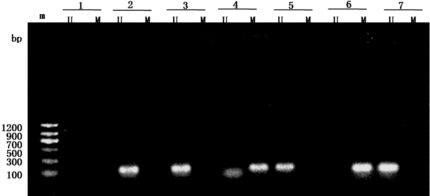 The promoter sequence of the human p16 gene (ENST000004494) was was obtained University of California Santa Cruz Genome Browser (http://genome.ucsc.edu). The CpG islands were predicted using MetaPrime (Supplementary Figure 1). Methylation and non-methylation primers were designed using the Methyl Primer Express v. 1.0 software (Applied Biosystems Inc., Carlsbad, USA), MethPrimer (http://www.urogene.org/methprimer/), Primer Premier 5.0 (PREMIER Biosoft, San Francisco, USA), and Oligo 7.0 (Molecular Biology Insights, Inc., Cascade, USA) (Table 1). Methylation-specific PCR was conducted using an EpiTect MSP Kit (Qiagen, Hilden, Germany), according to the manufacturer’s instructions. The PCR conditions were 95°C for 10 min, followed by 40 cycles of 94°C for 15 s, 55°C for 30 s, 72°C for 30 s, and 72°C for 10 min. The subsequent PCR products were visualized using 1.2% agarose gel electrophoresis.