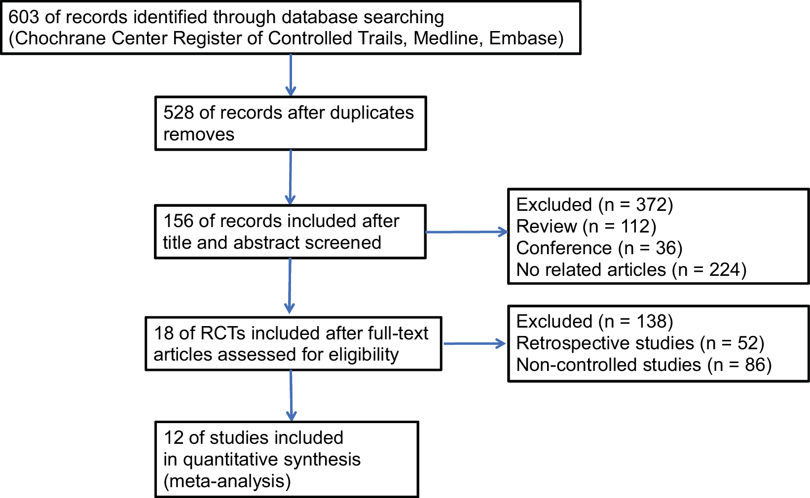 Two authors (WZ and DLH) independently searched articles published in PubMed, Embase and Cochrane Library between January 2000 and December 2018. The terms utilized included “gastric carcinoma”, or “adenocarcinoma of the stomach”, or “gastric cancer”, or “stomach tumors” and “radiotherapy”, or “radiation therapy”, or “chemotherapy”, or “external irradiation therapy”, or “adjuvant chemotherapy”, or “external radiation therapy”. Only randomized controlled trials (RCTs) published in English were included in this meta-analysis. The eligible studies should have met the following criteria: 1) involving patients histologically confirmed with advanced GC; 2) RCTs reporting the comparison between adjuvant therapy after radical surgery or surgery alone; 3) Reporting the hazard ratio (HR) and the corresponding 95% confidence interval (95% CI) for OS and RFS/DFS.