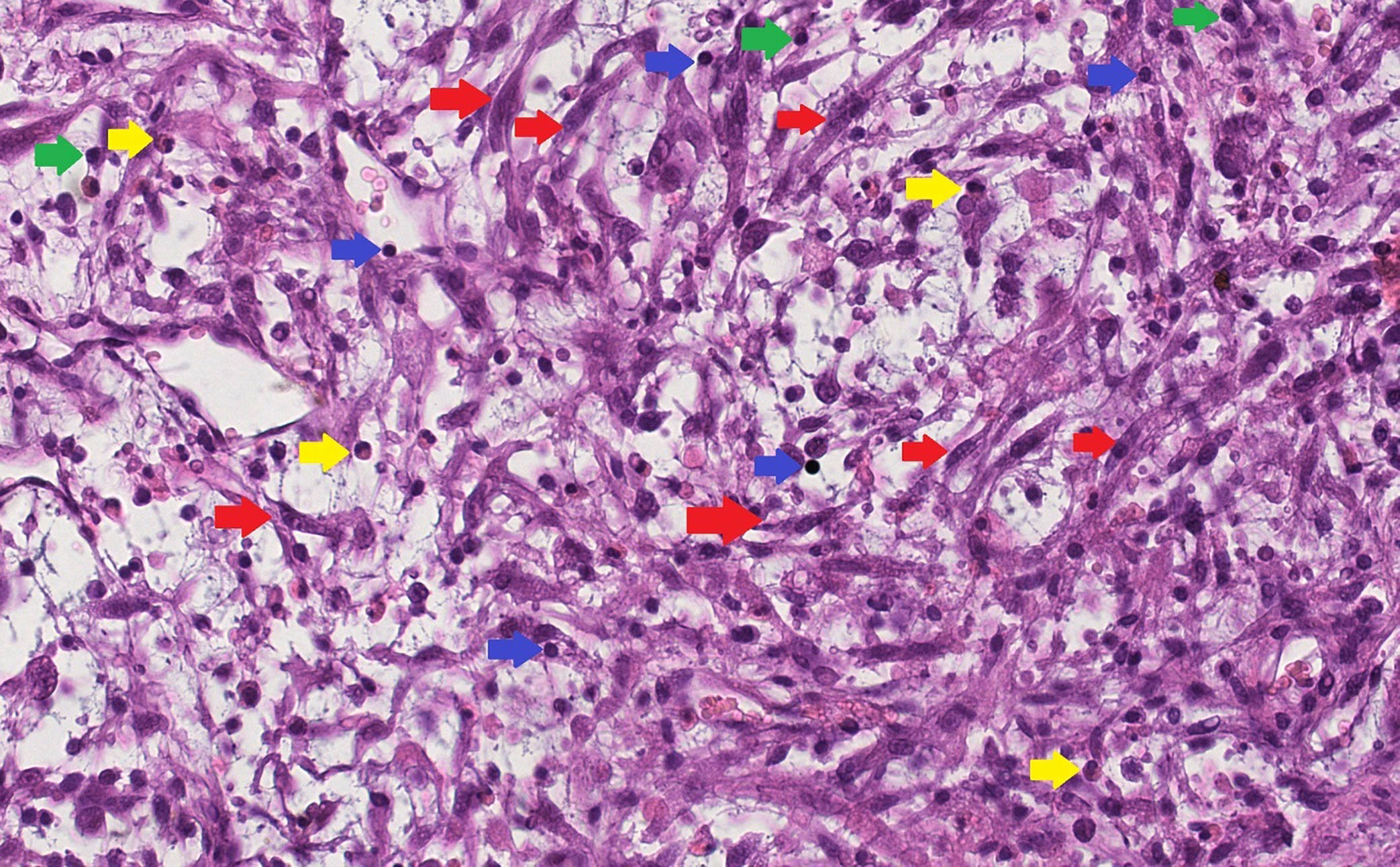 Certain benign non-neoplastic lesions with histopathological features, like hypercellularity, cytological atypia and increased mitotic activity, are classified as psuedosarcomas.61 Integrating clinical and paraclinical data can help avoid misdiagnosing inflammatory lesions as sarcomas.