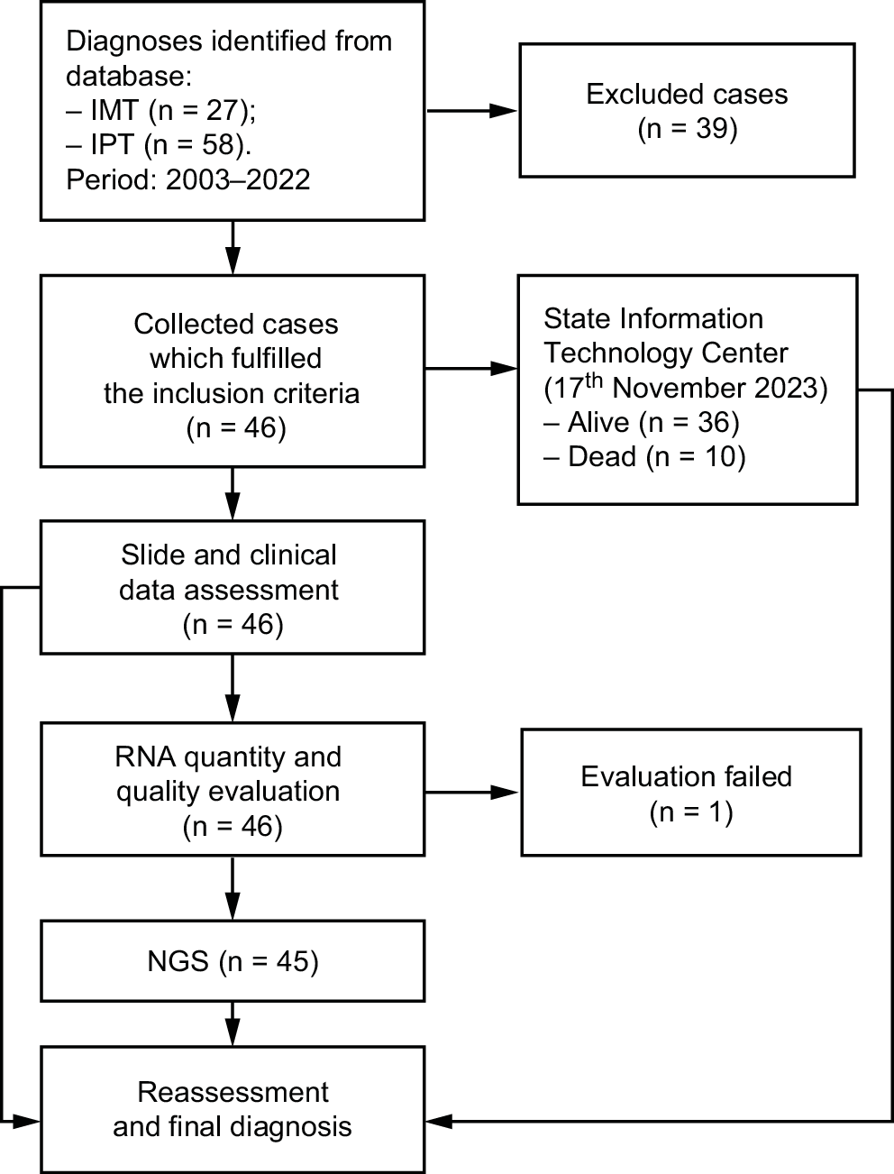 Objectives. This study aimed to: 1) investigate the accuracy of the primary diagnosis of IMT and IPT with the diagnostics using extended analysis of clinical data, re-evaluation of histopathological slides and next-generation sequencing (NGS); and 2) to establish prognostic and diagnostic factors.
