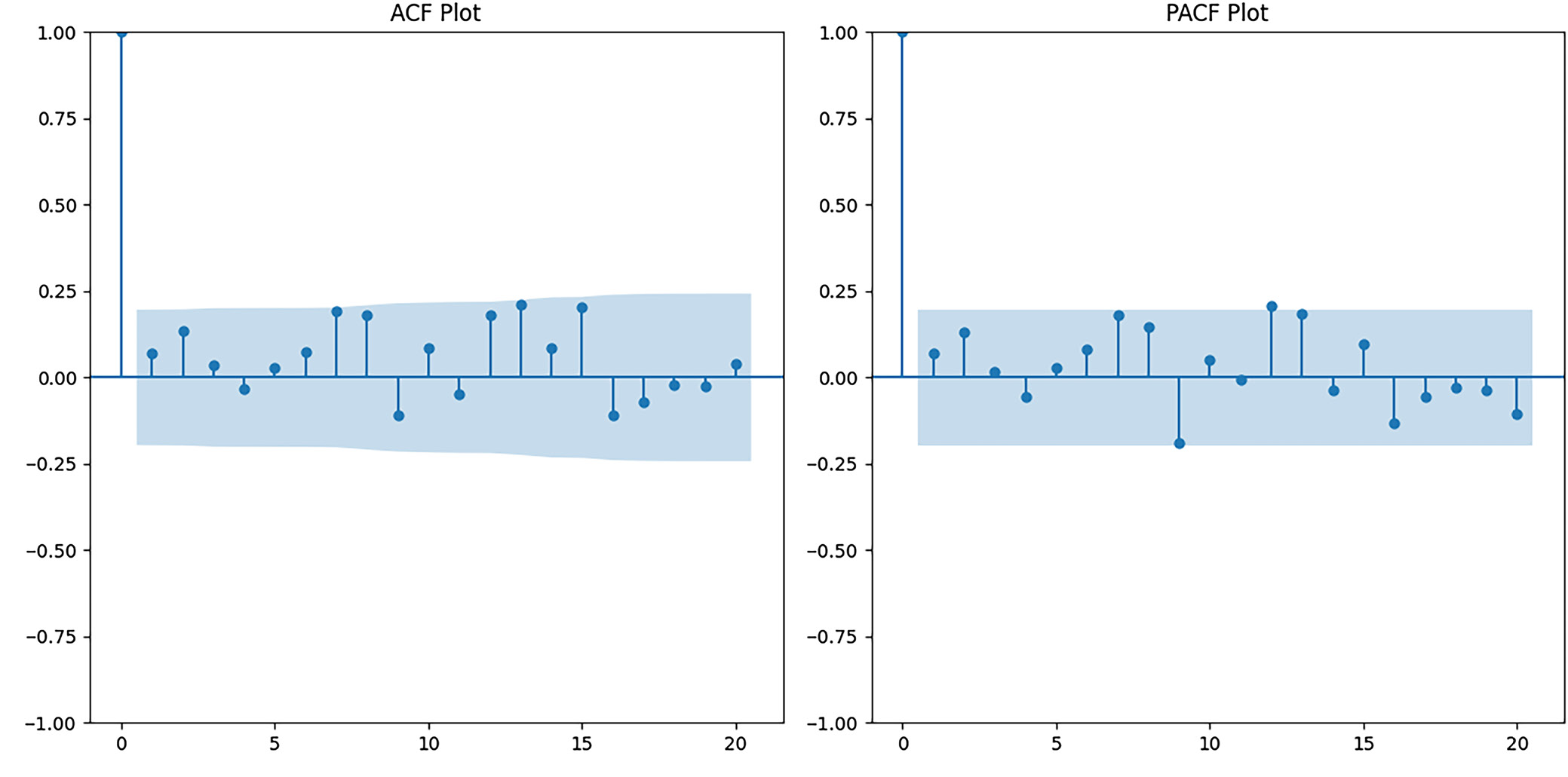 To further ensure the model’s validity, a comprehensive residual diagnostics process was performed to check for autocorrelation and normality of the residuals. The results confirmed that the residuals were approximately white noise, indicating that the fitted ARIMA model was well-specified and reliable, providing a high confidence level in its adequacy.