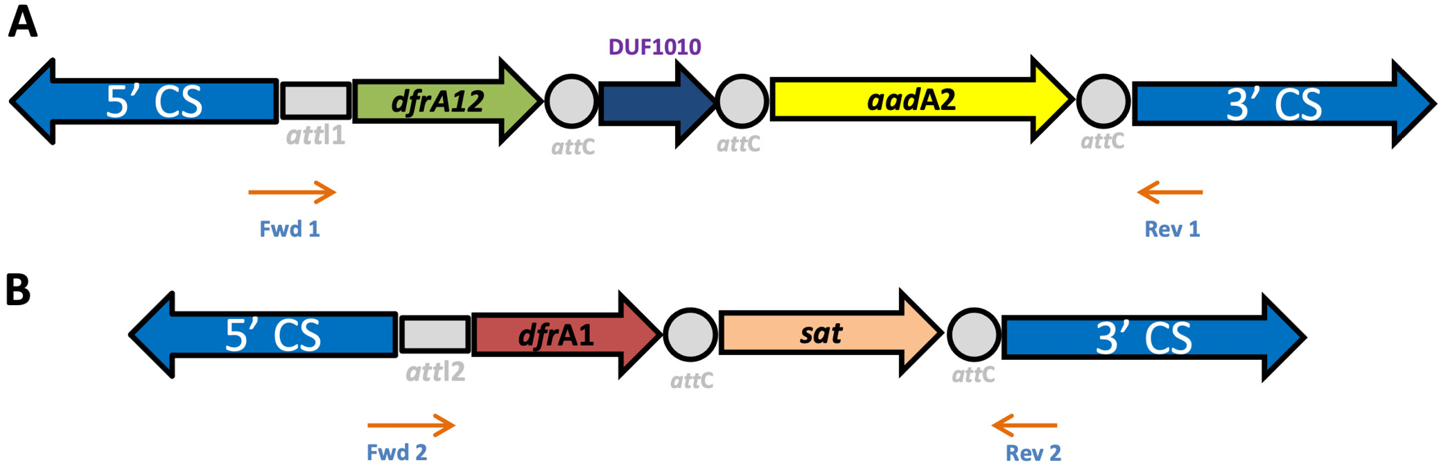 Results. While all isolates were resistant to TMT-SXT and gentamicin, amikacin and tobramycin resistance rates were detected as 70% and 26%, respectively. Class I and class II integrons were found in 1 strain and 2 isolates, respectively. It was also determined that the dfrA12 gene and the aadA2 gene were found in the class I integrons. It was determined that 2 isolates carrying class II integron had dfrA1 and sat2 genes. Both class I and class II integrons were detected in 1 of these isolates.