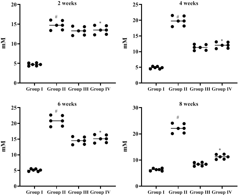 Body weight and BG were determined at 2-week intervals using blood samples taken by tail puncture in the lateral vein. Blood glucose levels were tested using a glucometer (LifeScan Inc.)